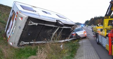 Der 59-jährige Lkw-Fahrer war in Richtung Bretten unterwegs und ist aus noch unklarer Ursache in einer langgezogenen Rechtskurve mit seinem Auflieger rechtsseitig von der Fahrbahn abgekommen.