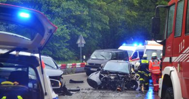 In Höhe der Hausnummer 48 überholte sie einen vor ihr fahrenden VW, ohne auf den Gegenverkehr zu achten. Eine entgegenkommender Seatfahrer bremste seinFahrzeug voll ab und wich nach rechts aus. Die nachfolgende Fahrerin eines VW und die Fahrerein eines Porschet konnten nicht mehr rechtzeitig bremsen und fuhren auf.