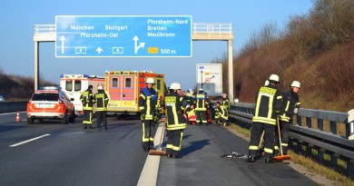 Zwei schwer verletzte Personen und ein zerstörtes Auto sind das Ergebnis eines Verkehrsunfalls auf der kurvenreichen Strecke der #A8 in Fahrtrichtung Karlsruhe. Ein mit zwei Personen besetzter Wagen verunfallte kurz vor 12:00 Uhr, als der Wagen zwischen den Anschlussstellen #Pforzheim West und Karlsbad allein beteiligt aus bislang unbekannter Ursache nach rechts von der Fahrbahn abkam, sich zweimal überschlagen hatte und auf dem Standstreifen der Autobahn zum Stillstand kam. Bislang ist bekannt, dass der Wagen unmittelbar vor dem Unfall entweder auf dem linken oder auf dem mittleren Fahrstreifen unterwegs gewesen ist.