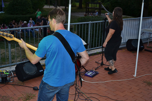 Drei Bands spielten am Samstag, 22. August 2015, ab 15 Uhr im Freibad Wölfle in Karlsruhe-Wolfartsweier. Bei „Rock im Wölfle“