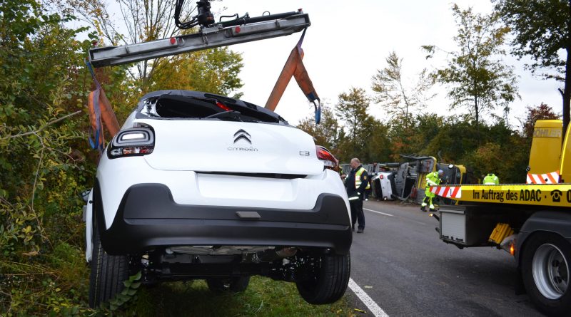 Walzbachtal: Fahrer weicht einem Tier aus – Autotransporter kippt um – 270.000 € Sachschaden – 22.10.2016