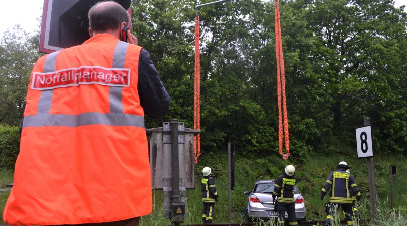 Kurioser Unfall: PKW landet auf den Gleisen am Bahnübergang zwischen Ludwigsplatz und Rotplatte